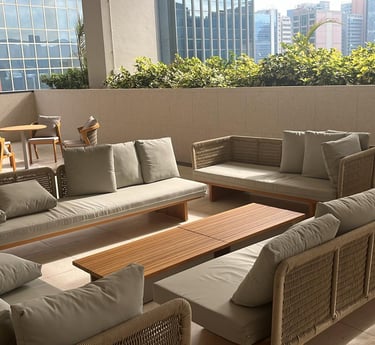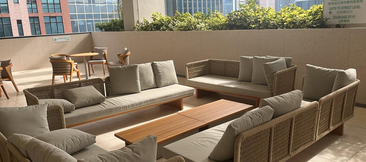 舒適沙發區:高品質的戶外沙發組,適合深度洽談或小組討論。